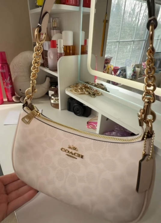 Beautiful bag not too big not too small just the right size. Love the material soft and buttery. Well worth the price would definitely recommend.